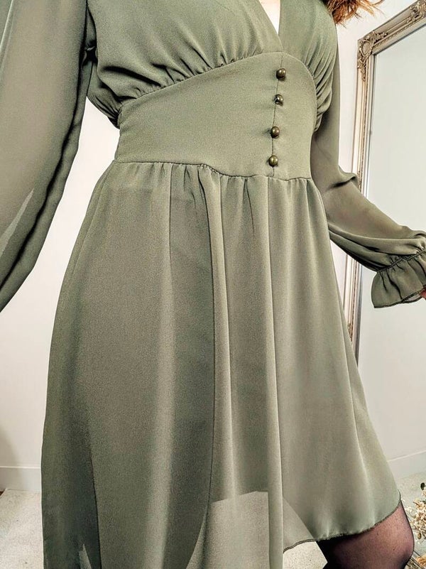 Laissez-vous séduire par cette robe courte en voilage, idéale pour un look chic et féminin. Sa taille style corset sublime la silhouette, tandis que ses manches légèrement bouffantes ajoutent une touche de sophistication. Avec ses trois coloris disponibles, cette robe fluide et agréable à porter s'adapte à toutes vos envies.